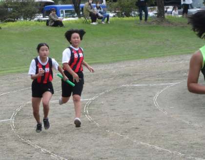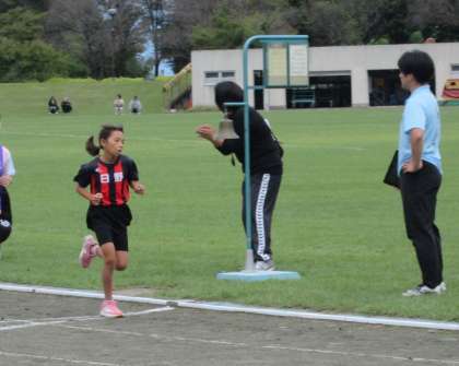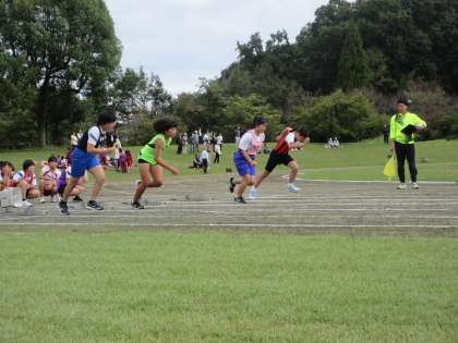 10/10 市陸上教室記録会に56年生が参加しました(3) 公開日 2024/10/10 更新日 2024/10/10 できごと 女子800mに参加した5年生の競技が終了した後、女子100m×4リレーに日野小チームが出場しました。この日のために休み時間もがんばっていました。そのかいあって、バトンミスもなく無事走り終えました。選手のみなさん、お疲れ様でした。