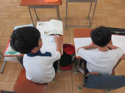2年生は引き続き「お手紙」の物語文の読解に取り組んでいます。ここでは「自分だったらどう考えるか・どうするか」など、より読解を深めるための指標が提示され、子どもたちはそれぞれ考えたり、意見を述べ合ったりしています。
