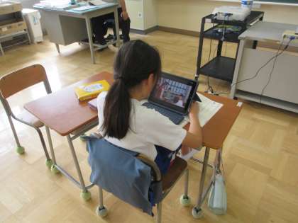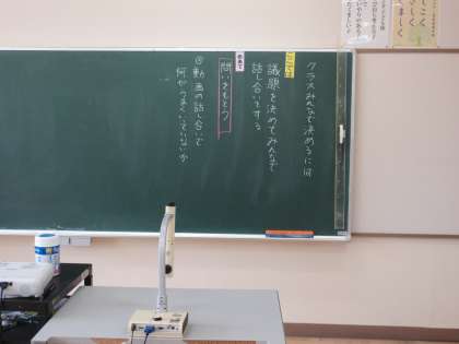 4年生は学級活動で、今度平井小学校で参加させてもらう「学級会」の準備を進めています。今日は「学級活動」の様子をビデオ視聴し、どのような言葉遣いでどのように話し合われているかを確認していました。1人しかいない4年生にとって、同学年の児童との話し合い活動は貴重な経験です。
