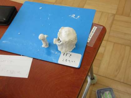 1校時から取り組んだ粘土細工が出来上がりました。それぞれ思い出のシーンを表しています。