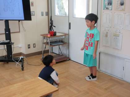 10/17 5校時2年生国語の学習 公開日 2024/10/17 更新日 2024/10/17 できごと 2年生は「お手紙」という物語の朗読劇の練習をしています。身振り手振りだけでなく、信条の読み取りを生かしてどう読めばよいのかを考えながら演技しています。来種火曜日が発表会とのことなので楽しみにしています。
