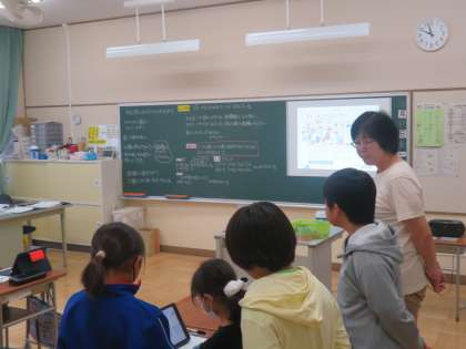 10/18 2時間目5年生算数の学習 公開日 2024/10/18 更新日 2024/10/18 できごと 5年生の算数は「単位量あたりの大きさ」の学習をしています。今日は違う広さのシートに違う人数が乗っていた場合、どのシートが一番混んでいるかについて考えていました。互いの考えを聞き合うことができました。