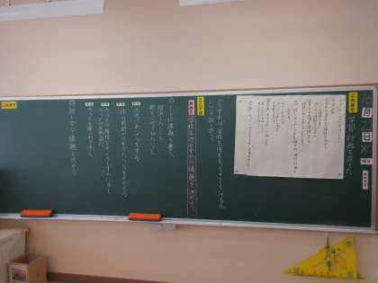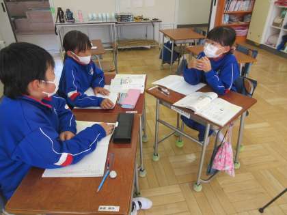 10/22 4校時5年生国語の学習 公開日 2024/10/22 更新日 2024/10/22 できごと 5年生は国語の学習で、「よりよい学校生活のために」というテーマで、話し合い活動の学習をしようとしています。それぞれ議題を考えその根拠を説明しながら、どのことについて話し合うかをまず相談しています。1名はリモートで参加しています。