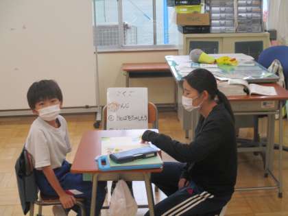 10/23 2時間目みかぼ学級国語の学習 公開日 2024/10/23 更新日 2024/10/23 できごと 今日の国語は「ことばをたのしもう」の学習で、教科に載っている詩を楽しんだり、早口言葉に挑戦したりしていました。