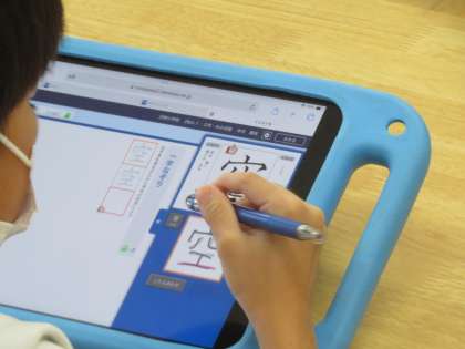 12年生は書写の学習です。その前にタブレットをつかって漢字を書く練習に取り組んでいます。