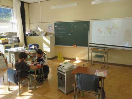 10/30 1時間目みかぼ学級算数の学習 公開日 2024/10/30 更新日 2024/10/30 できごと 今日の算数は「かたちづくり」の学習に取り組んでいました。色々な形を組み合わせて、様々な形づくりに挑戦していました。