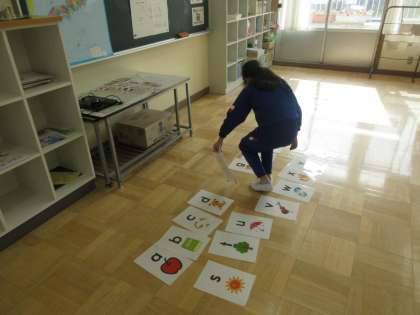 11/1 2校時4年生外国語の学習 公開日 2024/11/01 更新日 2024/11/01 できごと 4年生は、ALTの先生、美土里小からの専科の先生といっしょに英語の学習です。今日は、好きな色を英語で表現し、カルタをつかってスペルを学ぶ学習をしていました。出来上がったを先生と児童で確認し、合っていたので拍手をもらっていました。