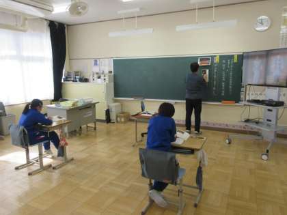 6年生は国語で、伝統文化の学習に取り組んでいます。今日は狂言「柿山伏」がどのような構成になっていて、どんな面白さがあるのかをまず教科書で確認し、映像で検証していました。独特の節回しに興味を引かれている様子でした。