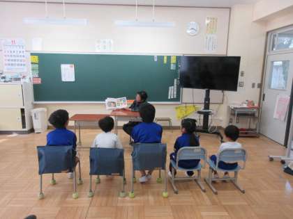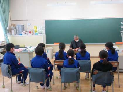 週の始めの業前は読み聞かせです。心を落ち着けて学習に臨むにはぴったりの活動です。みんな食い入るようにお話しを聞き入っています。「本は心の栄養」です。たくさん本を読んでほしいです。