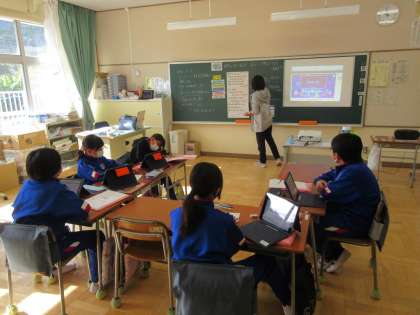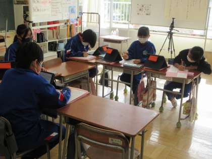 今日は美土里小の英語専科の先生が英語の授業を行っています。5年生では「友達が行きたい場所へ道案内するために」オリジナルタウンを作成して道案内を英語で行う準備を進めています。また、前時まで取り組んでいたインタビューの成果を発表するのに、その目当てを決めています。全員がどちらかというと難しい方の発表のめあてを選んでいました。自信を持って取り組めているのは、充実した英語学習ができているからです。発表が待ちどおしいです。