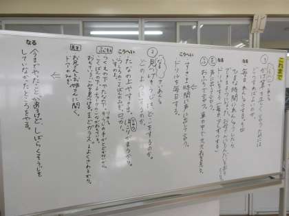 2年生は前時まで行っていた話し合い活動のまとめをしています。色々な人の意見を通して、自分たちが課題だと思っていることへの対応がきまり、「話し合い活動のよさ」を再確認していました。