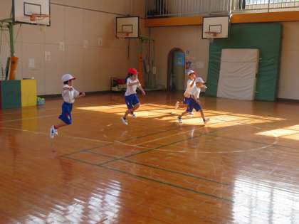 11/5 4時間目低学年体育の学習 公開日 2024/11/05 更新日 2024/11/05 できごと 今日の低学年の体育は体育館で走る運動をしていました。スキップからのダッシュや座った状態から素早く立ってのダッシュなど、色々な走りをしていました。