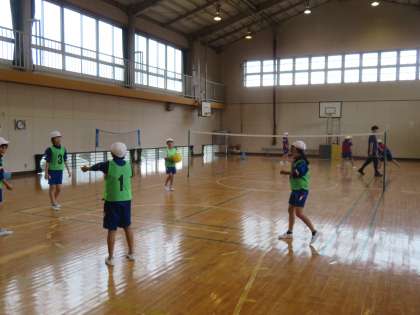 高学年の体育はソフトバレーボールの学習をしています。今日は体育館でチームごとに練習に取り組んでいました。みんな楽しそうに活動していました。