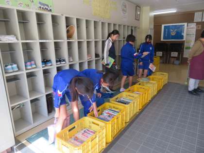 今日は学校巡回文庫の日でした。みんな読みたい本を熱心に見つけていました。これから読むのが楽しみです。