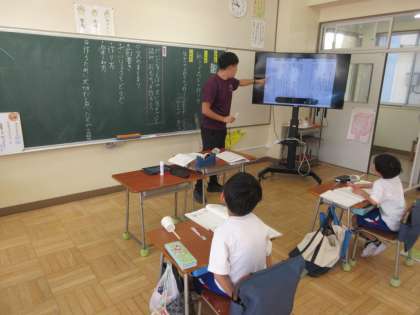 2年生は、国語で「紙コップ花火」の作り方を文章で書いて、説明する学習に取り組んでいます。生活科でおもちゃをつくったときのことを手がかりに、写真があった方がよい、つなぎ言葉で分けて説明するのがよい、など色々なことを盛り込んで説明文を書く学習です。説明をしに職員室に来てくれると思いますので、作り方が伝わるかしっかり聞きたいと思います。