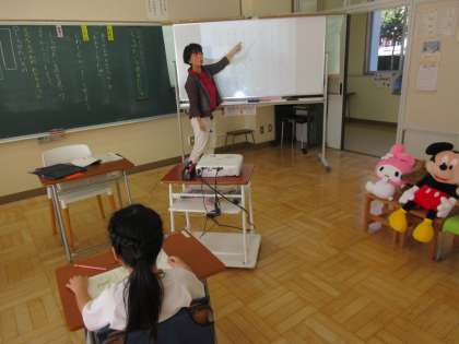 11/8 3校時1年生国語の学習 公開日 2024/11/08 更新日 2024/11/08 できごと 1年生は今日から新しい題材「しらせたいな見せたいな」で、お家の人やお友達にしらせたいことを見つけて、絵や文章で表す学習に取り組みます。生活科で見つけたものを手がかりに「かんさつ」という言葉の意味をとらえ、この後自分でも観察して絵や文章でまとめます。何を紹介してくれるのかとても楽しみです。様子を見ていると音読もしっかりしてきて成長が感じられます。
