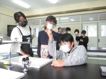 次にメスシリンダーの使い方を学習した後、水にとけて見えなくなった食塩のゆくえを調べました。