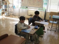 2年生の国語は説明文「紙コップ花火の作り方」の学習をしています。今日は自分が作るおもちゃの作り方を上手に説明するために、教科書の作り方がどのように工夫して書かれているかを学習していました。