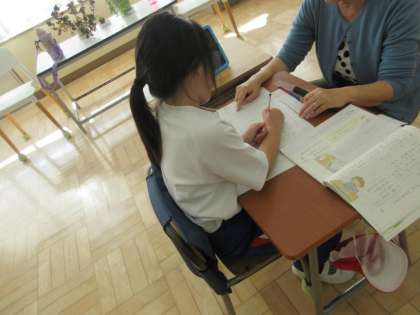 1年生は、「しらせたいな、見せたいな」という題材で、自分が知らせたい生き物のことについて文章を作っています。その動物の特徴や印象に残っていることをメモとして書き留め、それを元に一つの文章を作り上げています。1年生は「りんくん」というねこのことを書こうとしています。もうすぐ完成なのでまた出来上がりを読ませてもらおうと思います。