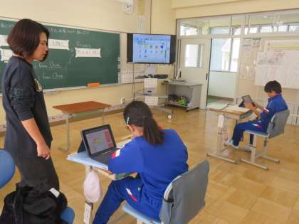 11/12 3時間目6年生外国語の学習 公開日 2024/11/12 更新日 2024/11/12 できごと 今日の外国語は「お気に入りコーデは、どこの国からきている服なのか調べよう」をめあて学習していました。自分に服がどこの国で作られているかを調べ、英語で表現していました。