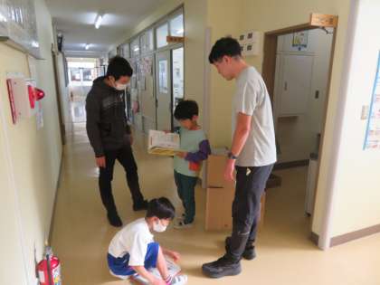 11/2 1時間目2年生国語の学習 公開日 2024/11/13 更新日 2024/11/13 できごと 2年生の国語は「おもちゃの作り方をせつめいしよう」の学習をしています。自分が作ったおもちゃの作り方をせつめいするために、まずは自分でおもちゃをつくります。今日は必要な材料を集めていました。