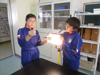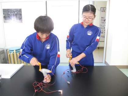 11/13 6年生 理科 公開日 2024/11/13 更新日 2024/11/13 できごと 手回し発電機や光電池でつくった電気をコンデンサーにためて、電気は何に変えて利用できるか調べました。 電気は、光、音、運動、熱などに変えて利用できることがわかりました。