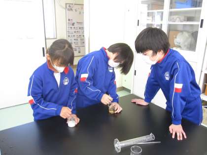 11/13 5年生 理科 その1 公開日 2024/11/13 更新日 2024/11/13 できごと コーヒーシュガーやかたくり粉を、水に入れてみると、コーヒーシュガーはつぶが見えず、液がすき通っていましたが、かたくり粉は底にしずみました。 物が水にとけたとき、とけた物は液全体に同じように広がることがわかりました。