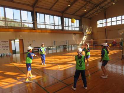 高学年の体育はソフトバレーボールの学習に取り組んでいます。チームごとにパスやサーブの練習に取り組んでいました。回数を重ねるごとにラリーの回数も増え、どんどん上達しています。