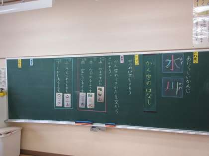 11/15 2校時1年生国語の学習 公開日 2024/11/15 更新日 2024/11/15 できごと 1年生は漢字の成り立ちの学習をしています。山や川のように形からできているものや、上や下のように指の動きからできているものなど、実際に指を動かしながら学んでいます。