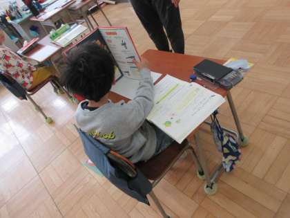 11/15 2校時2年生国語の学習 公開日 2024/11/15 更新日 2024/11/15 できごと 2年生は、国語の学習で図鑑を見ながらつくった手製のおもちゃについて、遊び方などを説明するための説明文づくりに取り組んでいます。今日から実際に説明文を書いています。図鑑を再度見返しながらつなぎ言葉を意識して作文しています。