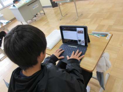 6年生は、総合的な学習の時間で修学旅行のまとめをしています。どんな活動を行ったのかプレゼン資料をタブレットで作成しています。どんな発表をするのかとても楽しみです。