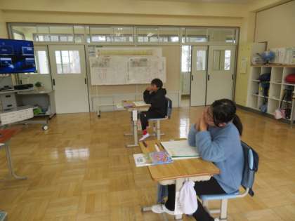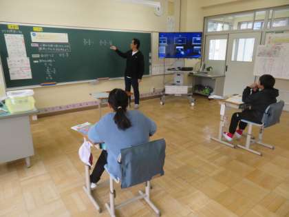 6年生の算数は「比」の学習をしています。今日は「小数や分数で表された比を簡単にする方法について考えよう」をめあてに学習していました。