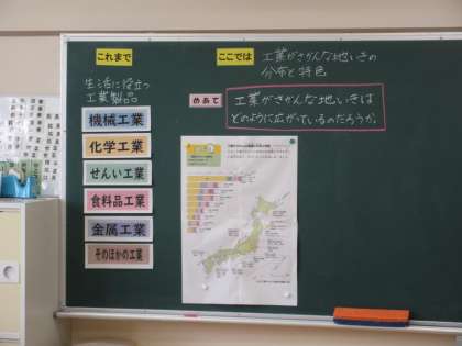 5年生は社会科で「工業が盛んな地域の分布と特色」について学習しています。1学期に見学に行ったSUBARUの工場見学を想起しながら日本全土の工業地帯の特色について学んでいきます。