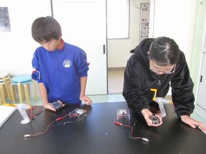 11/18 6年生 理科 その1 公開日 2024/11/18 更新日 2024/11/18 できごと 豆電球と発光ダイオードでは、使う電気の量にちがいがあるのか調べました。豆電球よりも発光ダイオードのほうが、使う電気の量が少ないことがわかりました。