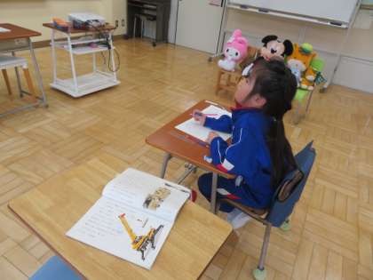 11/20 5時間目1年生国語の学習 公開日 2024/11/20 更新日 2024/11/20 できごと 1年生の国語は説明文「じどう車くらべ」の学習をしています。今日はトラックとクレーン車のしごととつくりについて教科書から読み取っていました。