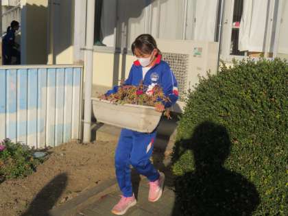 12/5 プランター運び 公開日 2024/12/05 更新日 2024/12/05 できごと 春から学校の二階のベランダできれいなサフィニアを咲かせていたプランターを運びました。来週はパンジーを定植する予定です。みなさんご苦労様でした。