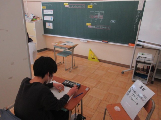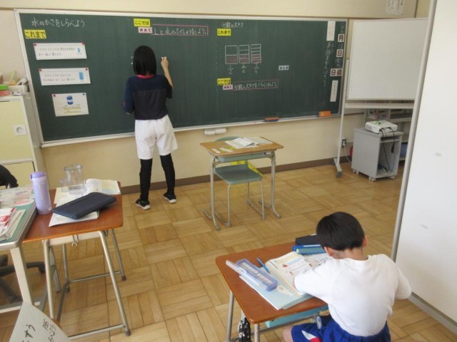 2/28 3校時みかぼ学級算数の学習 公開日 2025/02/28 更新日 2025/02/28 できごと みかぼ学級では2年生が「かさ」について、5年生が「分数」んついて学習しています。これまでの学習経験をもとに学習が進められています。