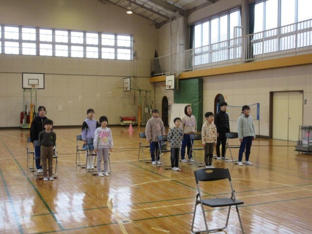今日の業前は卒業式で記念品授与の練習を行いました。また在校生は別れの言葉の練習もしました。雪の降る寒い朝でしたが、子どもたちは元気に練習に取り組んでいました。