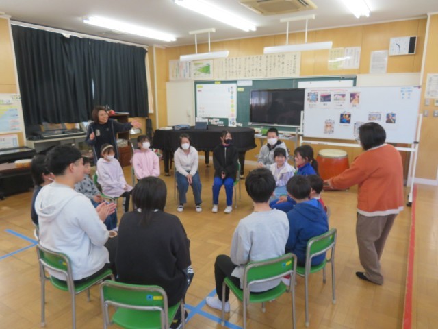 3/21 休み時間 全校で英語遊び 公開日 2025/03/21 更新日 2025/03/21 できごと 20分休みに音楽室で、英語を使った遊びを全校のみんなで行いました。月曜日には6年生が卒業してしまします。今年度のメンバー全員で楽しく過ごす最後の時間となりました。