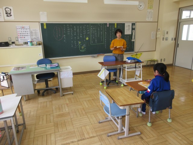 2年生は国語の学習を始めています。教科書の冒頭に出てくる「たんぽぽ」という詩を読んで、感じたことををもとに、読む練習をします。2年生になって一段と読んだり書いたりがスムーズになっています。