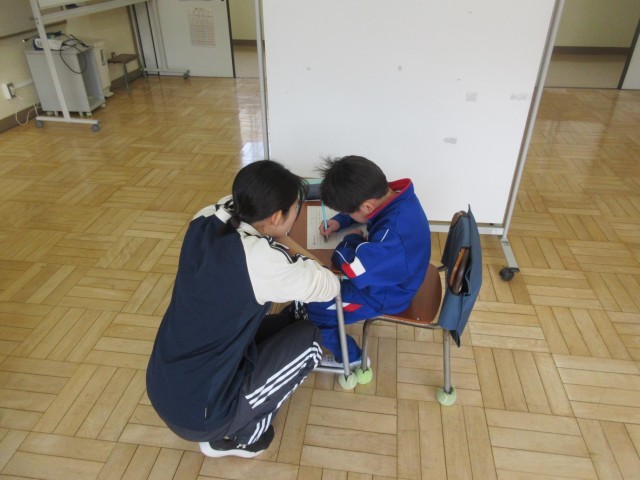 みかぼ学級では算数の学習が始まっています。今日は、昨年度までのことを思い出すために、それぞれが計算練習に取り組んでいました。先生と1対1での学習です。この後、それぞれの学年の学習へと進んでいきます。