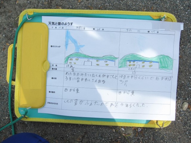 4/10 5年生 理科 公開日 2025/04/10 更新日 2025/04/10 できごと 天気が変わるときの雲のようすを調べました。 天気が変化するときには、雲の量がふえたり減ったりするなど、雲のようすが変化することがわかりました。 +4