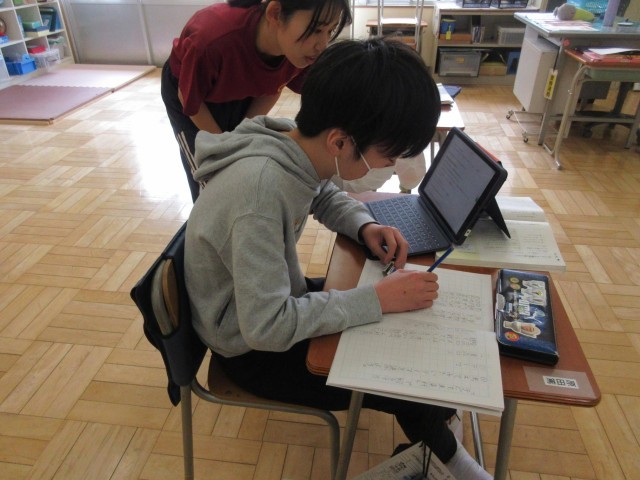 みかぼ学級では6年生が国語の学習をしていました。「『子ども未来科』で何をする」という学習で、自分でテーマを決めて、そのことに関するわかったことや考えたことをスピーチする学習です。「食品ロス」について調べることにして、タブレットで検索している中で、先生からアドバイスされた「日本で一番廃棄されている食品」を調べて、「みかん」であることがわかり、みんなでびっくりしました。「どうしてみかんなんだろう」という疑問を持ったようで、学習が広がっていきます。