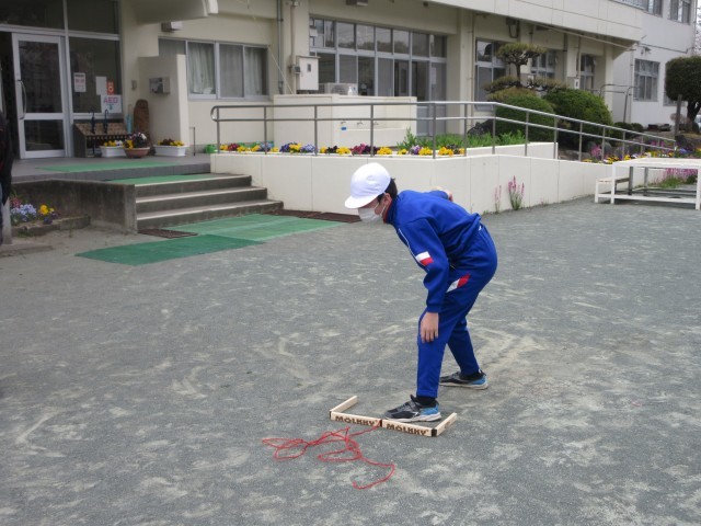 今日の5校時、みかぼ学級では「モルック」というゲームをしました。ゲームの運営を子どもたちが行い、先生方もそれに参加しました。ボーリングのピンのような丸太に同じく木の棒を当てて、点数を競うゲームです。ただし合計得点が50点を超えないようにしなければなりません。点数のつけかたや、どのピンを倒すか、考えながらゲームを楽しみました。自分たちで運営する、というところがよくできていました。