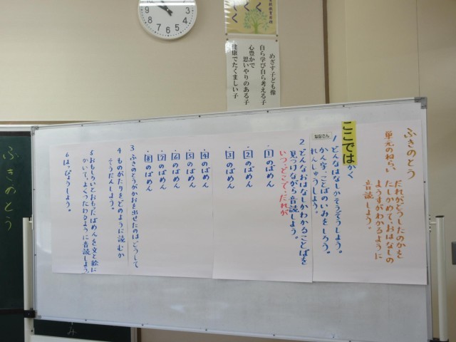 2年生は昨日に引き続き国語「ふきのとう」の学習です。場面ごとの音読に取り組みながら、どんなふうに読めば、場面の様子や心情が伝わるか先生といっしょに考えながら学習を進めています。