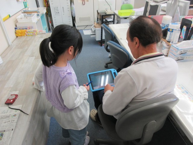 2年生が職員室を訪れ、業務員の方にお話しを聞いていました。どんなことを聞いているかそっと近づいて聞いていると、生活科で野菜を植えるのに、この時期に育てる野菜で、育てやすいのは何かを聞いていました。事前に育ててみたい野菜をあげて、その中から何を育てたらよいか迷ったので、畑のことにくわしい業務員さんに聞きに来たようです。どんな野菜を育てるのでしょうか。楽しみです。