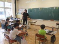3年生は国語で「もっと知りたい友だちのこと」という単元の学習をしています。今日は、業務員さんと保健の先生を交えて4人で、インタビューしあう学習をしていました。3年生の子が業務員さんに「野菜づくり」のことを互いに質問し合いながら、相手に話を聞くときの態度や、相手の話を聞くときの態度、質問の内容などについて教科書や映像で学んだことを実践していました。