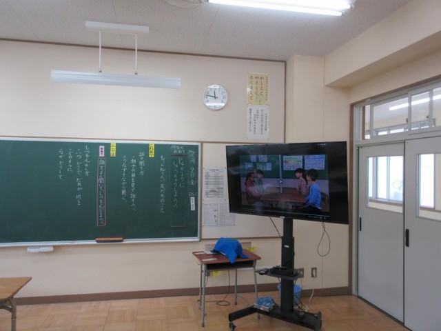 3年生は国語で「もっと知りたい友だちのこと」という単元の学習をしています。今日は、業務員さんと保健の先生を交えて4人で、インタビューしあう学習をしていました。3年生の子が業務員さんに「野菜づくり」のことを互いに質問し合いながら、相手に話を聞くときの態度や、相手の話を聞くときの態度、質問の内容などについて教科書や映像で学んだことを実践していました。