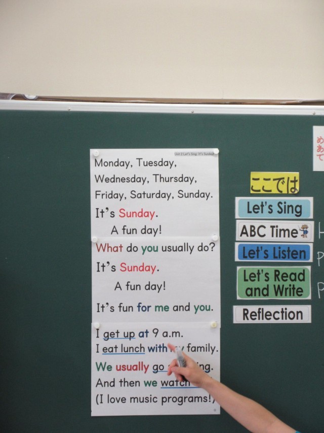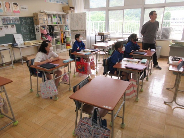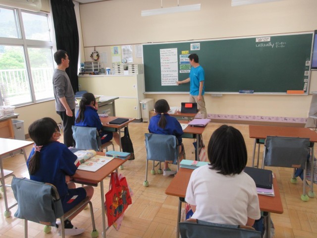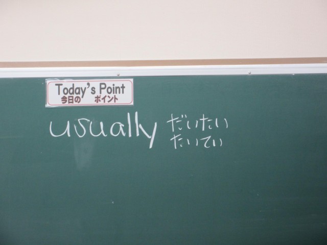 今日は週に1回のALTの先生が英語を教えに来てくれる日です。6年生は家での過ごし方を歌に併せて歌っていく中で、「usuaiiy」という単語の使い方を学んでいます。「だいたいはは~」という意味のことを表す単語として歌いながら学んでいます。