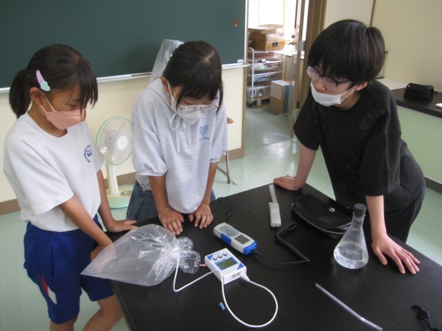 5/15 6年生 理科 公開日 2025/05/15 更新日 2025/05/15 できごと はき出した空気は、吸う空気とどこがちがうのか、石灰水や気体検知管、酸素センサー、気体チェッカーなどを使って調べました。 人は、空気を吸ったり、はき出したりして、空気中の酸素の一部をとり入れ、二酸化炭素をはき出していることがわかりました。 +7